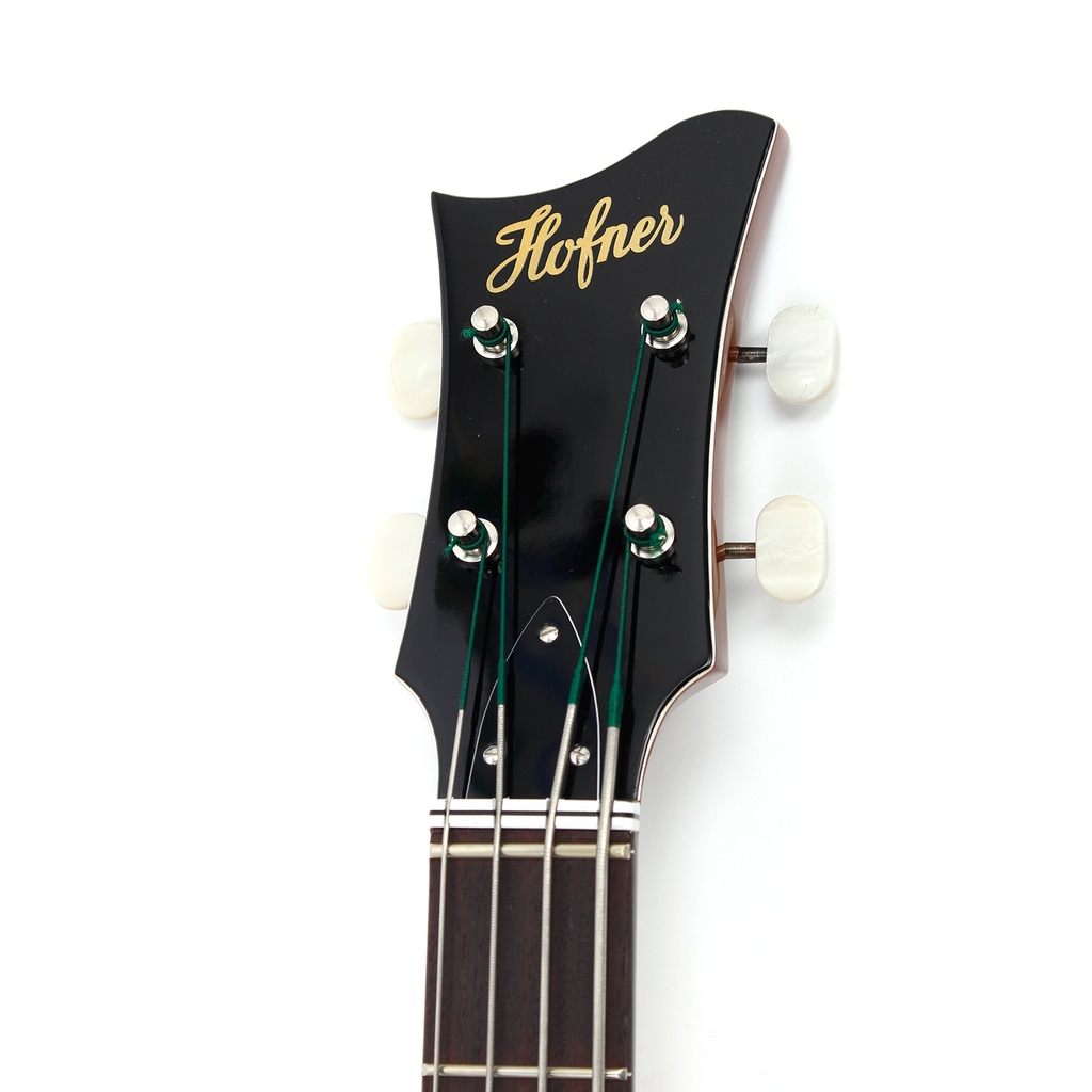 The 'Mersey' bass is a re-issue of a bass made in August 1963 for Paul McCartney. Two piece neck, two-on-a-strip tuners and unbound neck. Fully hollow body. Original '63 Hofner neck profile. Fitted with flatwound strings. For the fully authentic look and sound of the early 1960s this left handed bass is the one.