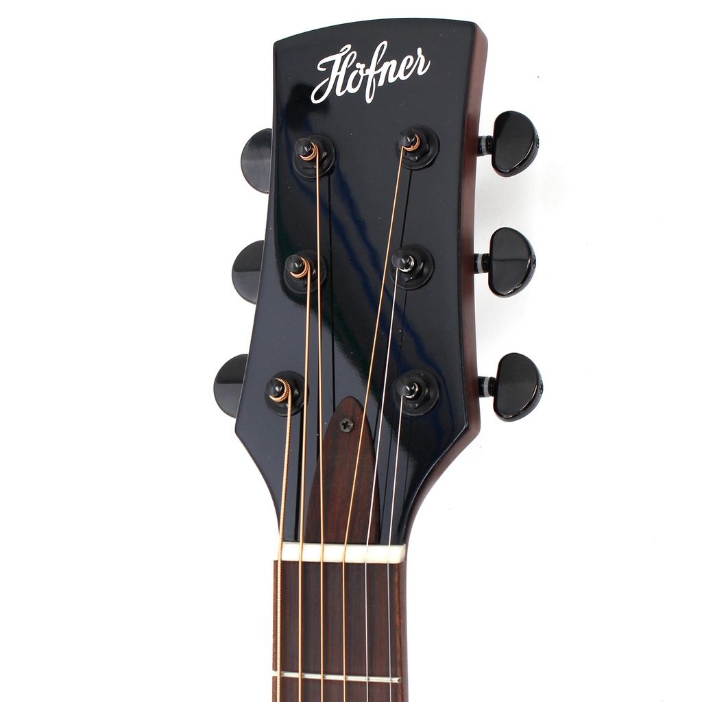 The Höfner Grand Auditorium offers a full sound with strong presence and is excellent for all types of acoustic playing. A Fishman pre-amp system with three band EQ, phase switch and tuner is installed. This Grand Auditorium uses a selected solid mahogany top.