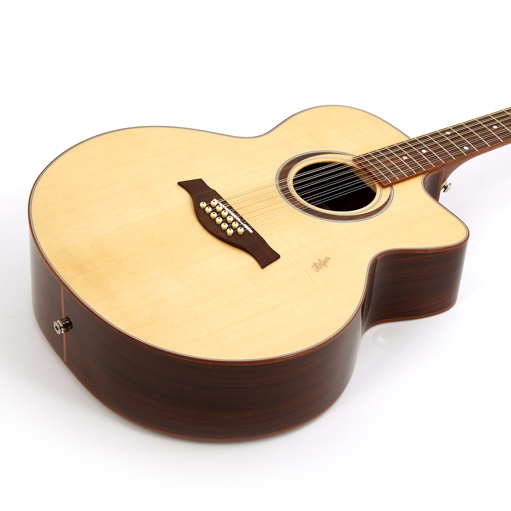 The large Jumbo Cutaway has a rich sound with full bass frequencies. Available as a 12 string version.
