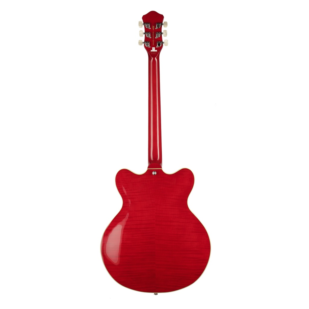 The new Verythin CT Special guitar blends vintage style with modern design elements. Most noticeable are the 'batwing' sound holes, a classic Höfner design from the 1960s, giving this guitar the distinctive Höfner retro look. Inside you will find a solid spruce centre block for modern sounds with better sustain. We've fitted the Special with a pair of new Höfner 'Vintage Voice' humbuckers that deliver a broad tonal range making this an extremely versatile guitar, everything from blues through to biting rock. The neck uses our 'Slendaneck' Höfner profile, developed in the 60s and still very comfortable today, letting you get the best out the instrument. Available in 'brunette' sunburst (SB) or transparent red (R).