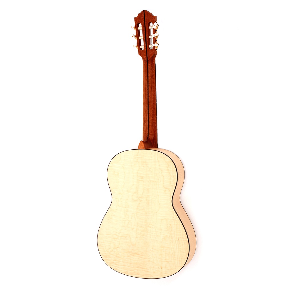 Excellent value Hofner classical guitar with a flamed hard maple body and a satin finish. The solid spruce top gives a transparent and balanced sound. The HF12 is our top selling guitar in the Classic series, no wonder at the high level of quality at the unbelievably low price. A robust guitar ideal for students or those wanting a good classical guitar at home.