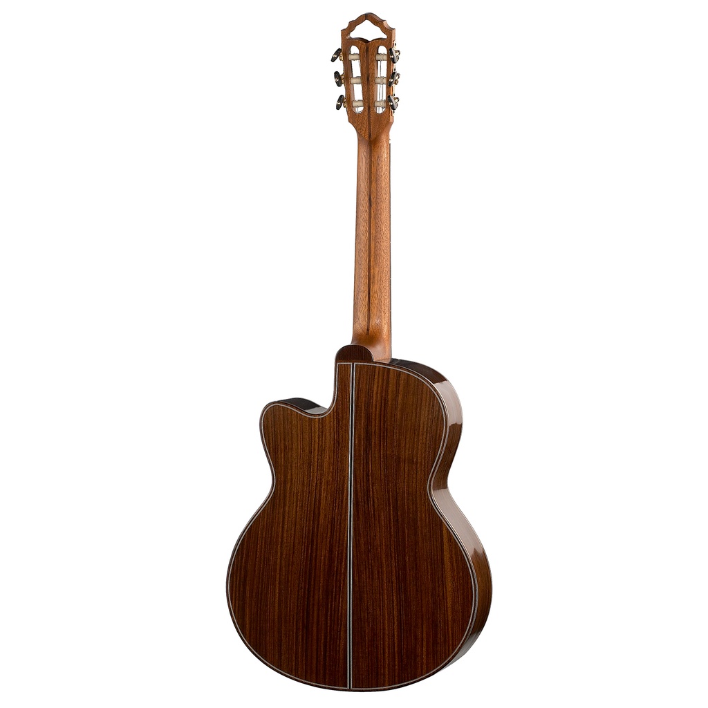 This stunning classical guitar features a fully solid rosewood body with a high gloss finish and a selected close grained German solid spruce top with a matt finish. This model has a cutaway for those wishing easier access to the high end of the fingerboard. The intricate wood inlays and the hand polished surface of the body bear witness to age old traditional craftsmanship. The special bracing design of the Cutaway model gives a sound volume which has not previously been achieved with this shape. The cutaway version is also available with a built in Hofner preamp system (HM88-CE). Including Hofner deluxe case.