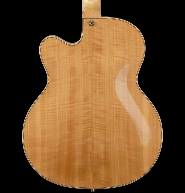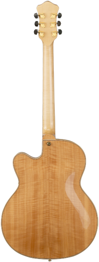 Carved top in selected solid German spruce, flamed maple body, ebony fingerboard. Höfner "Diamond" floating pick-up. Finish: Natural (N). Incl. Höfner Deluxe case.
