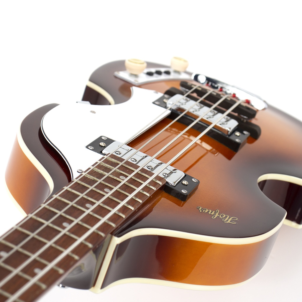 In contrast to the Contemporary series, the Ignition basses have a hollow body. In addition to the classic control panel with Tea Cup knobs, they are equipped with a wooden bridge and trapeze tailpiece and carry the traditional Höfner logo on the body.